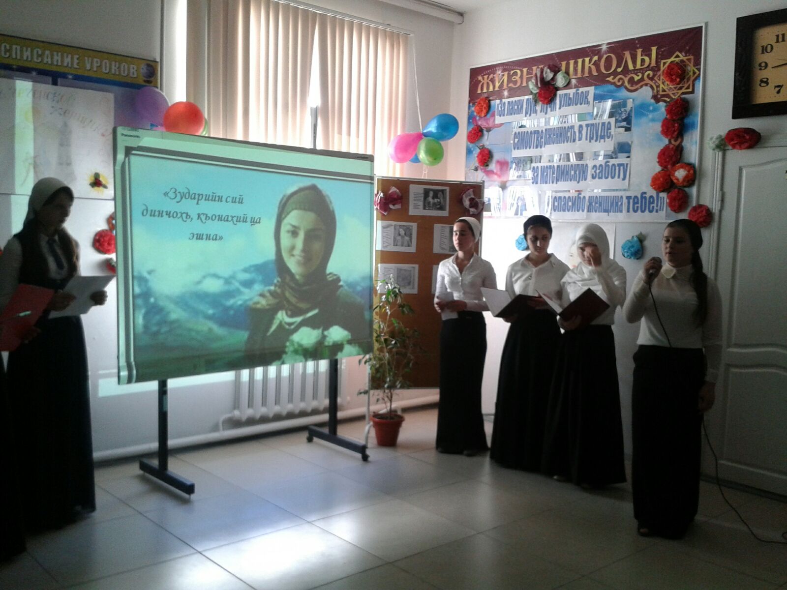 Общешкольное мероприятие, посвященное Дню Чеченской женщины, подготовили и провели совместно с учащимися, классные руководители Лабазанова З.Я -10 «а» кл. и Ахмадова Л.А. - 9 «а» класс.Ребята читали стихи и отрывки из произведений, пели песни и танцевали.Также на мероприятие были приглашены мамы учащихся.Сама атмосфера и выступления учащихся оставили приятные впечатления у зрителей