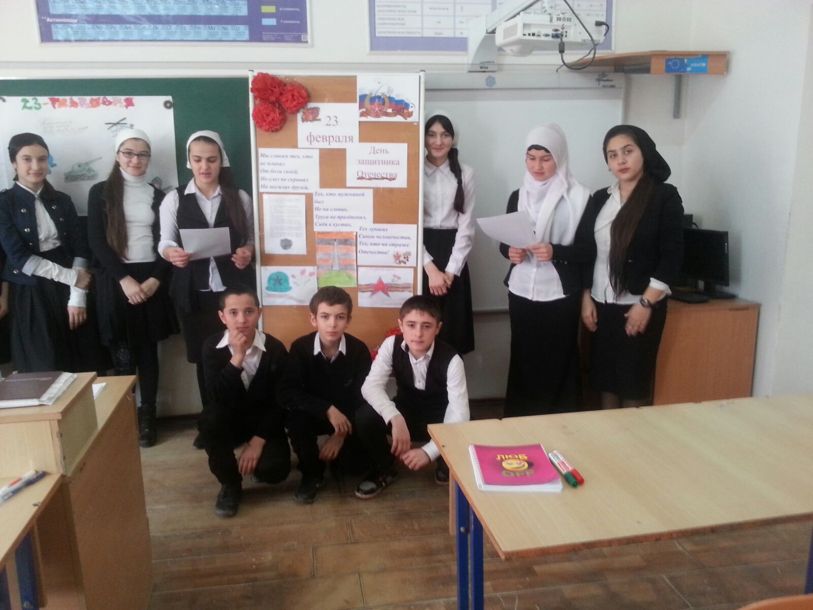 Классный руководители 8- х классов (Мутузова З.Х., Лабазанова М.Л.) провели беседу о Суворове А.В. на тему: «Сам себе воспитатель». На уроках пения педагог Рахиева М.А. разучивала с детьми песни военных лет.