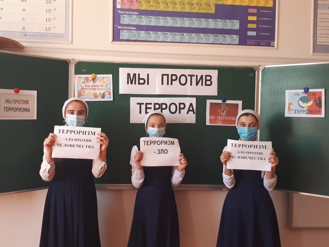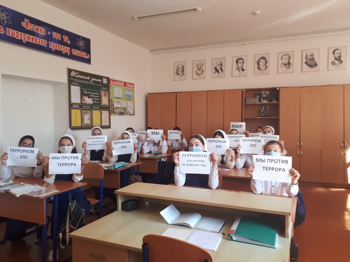 03.09.20203 сентября 2020 года в МБОУ «СОШ №2 с.Самашки» прошли мероприятия в форме классных часов на тему: «Мы против террора», посвященные ко Дню солидарности в борьбе с терроризмом