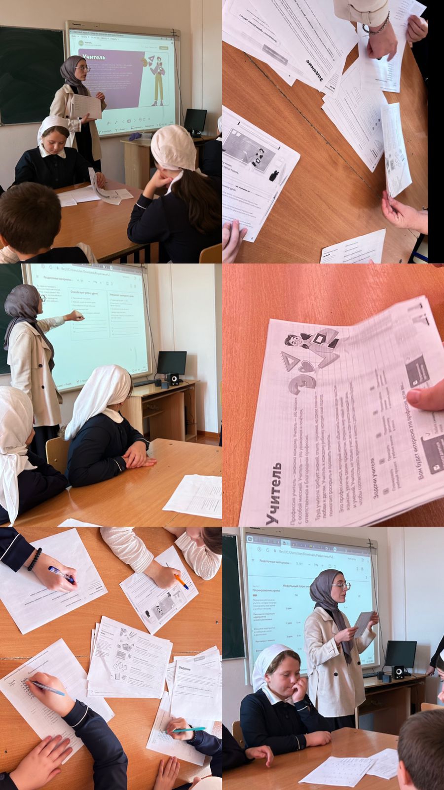 ». Ученики исследовали роль учителей,они узнали о требованиях, связанных с педагогической деятельностью. Классы активно участвовали в прохождении мини-игры с раздаточными материалами. Осознали всю серьезность работы учителя, и смогли попробовать побыть учителем на один урок.