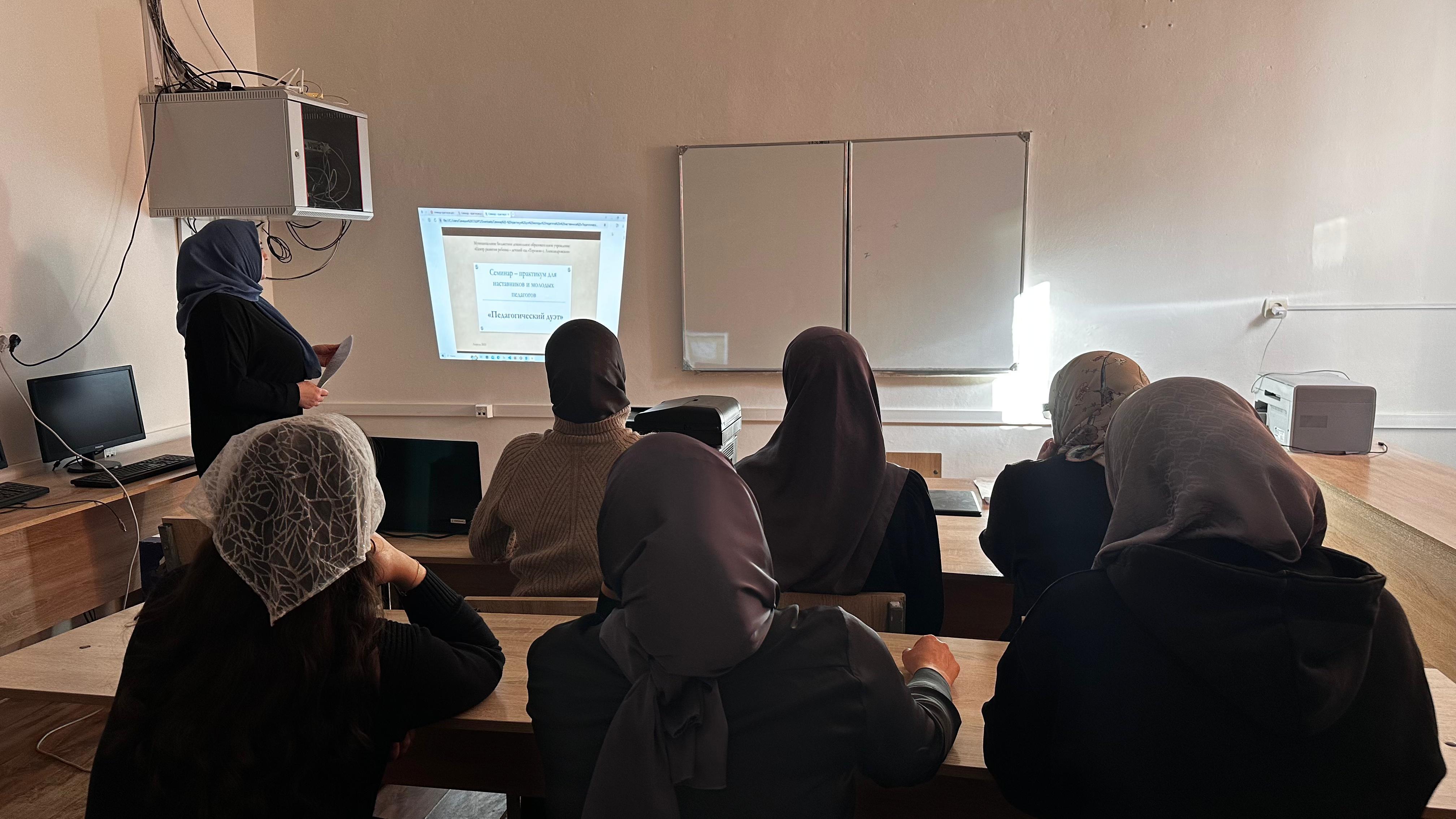 12.09.2024г Заместитель директора по МР Муциева Э.Ю провела семинар-практикум для молодых педагогов и наставников на тему «Педагогический дебют».В рамках семинара обсудили содержание наставнической деятельности ,планировали деятельность молодых педагогов в рамках методической темы года и темы самообразования.
