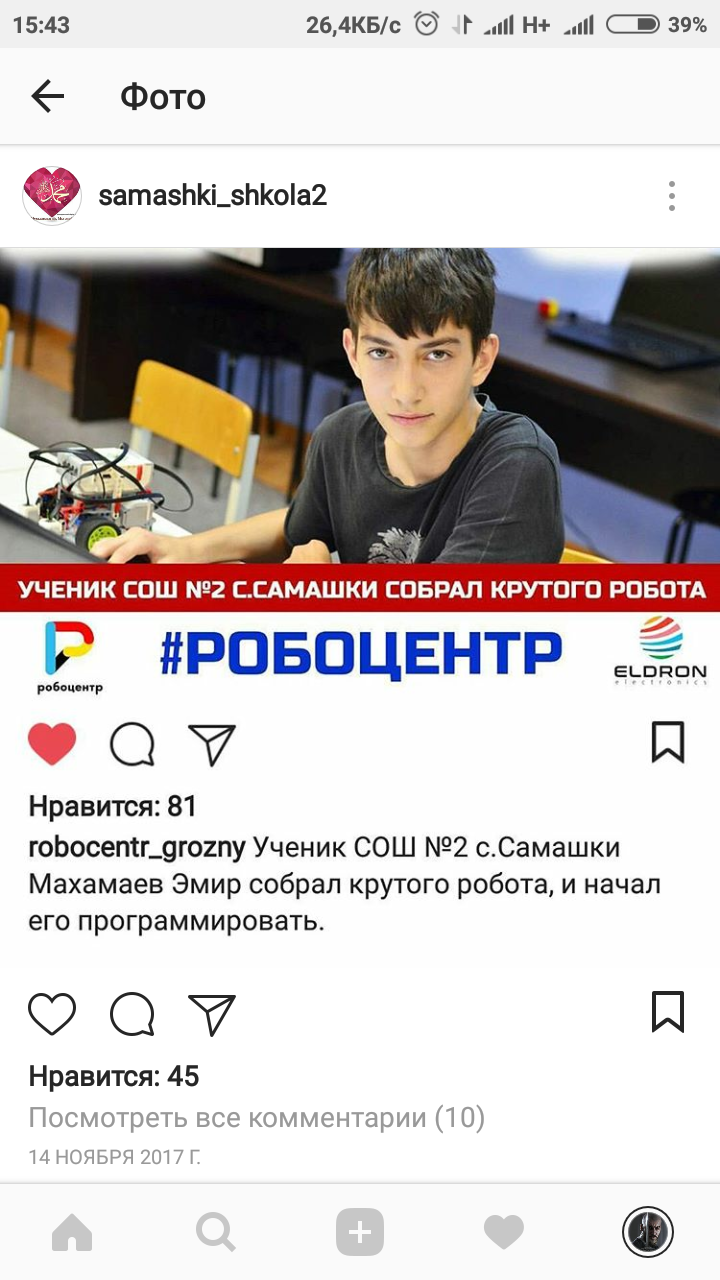 Наш ученик Махамаев Эмир собрал крутого робота и начал его прогромировать.
