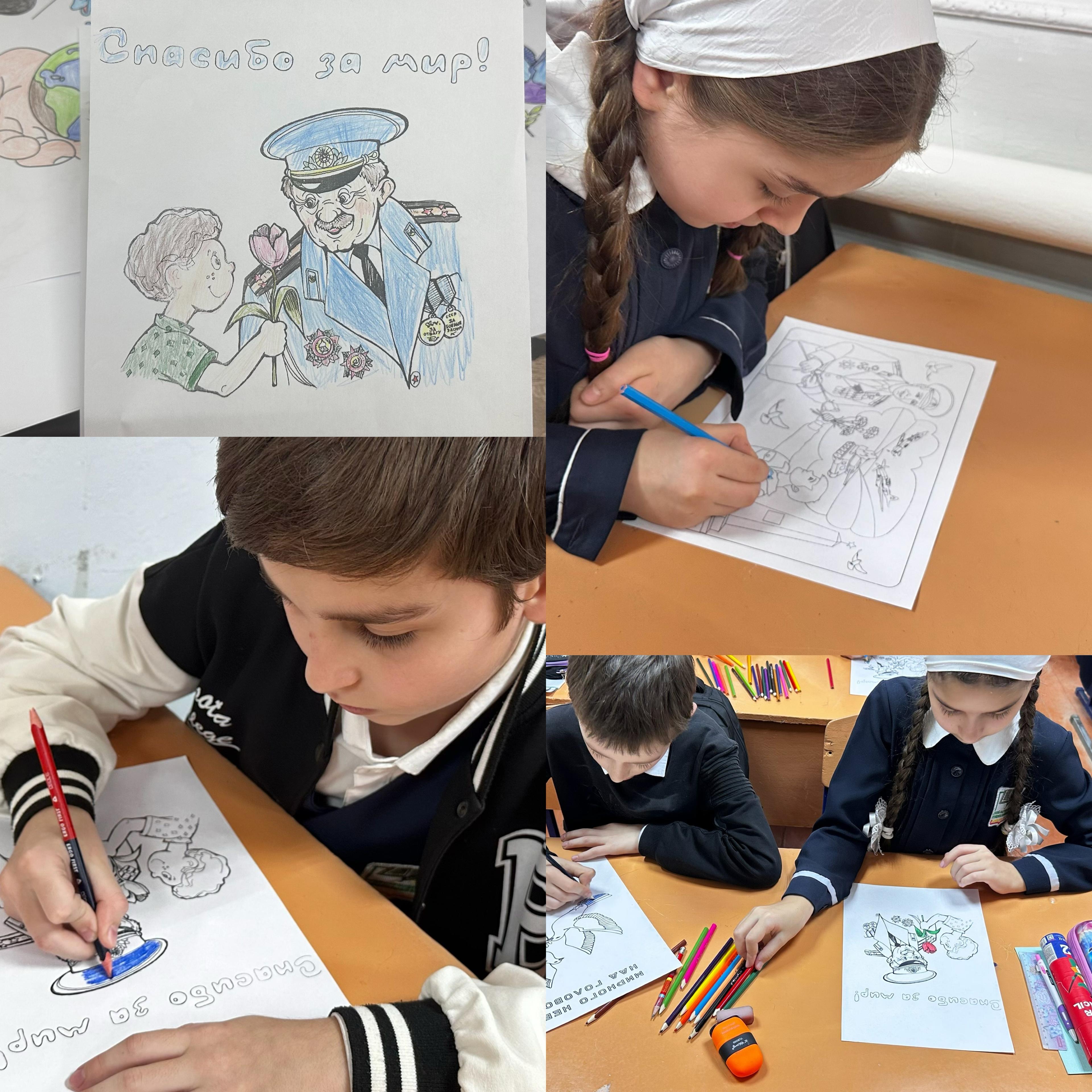 В МБОУ "СОШ №2 с.Самашки" с обучающимися начальных классов была организована выставка рисунков «Под мирным небом».