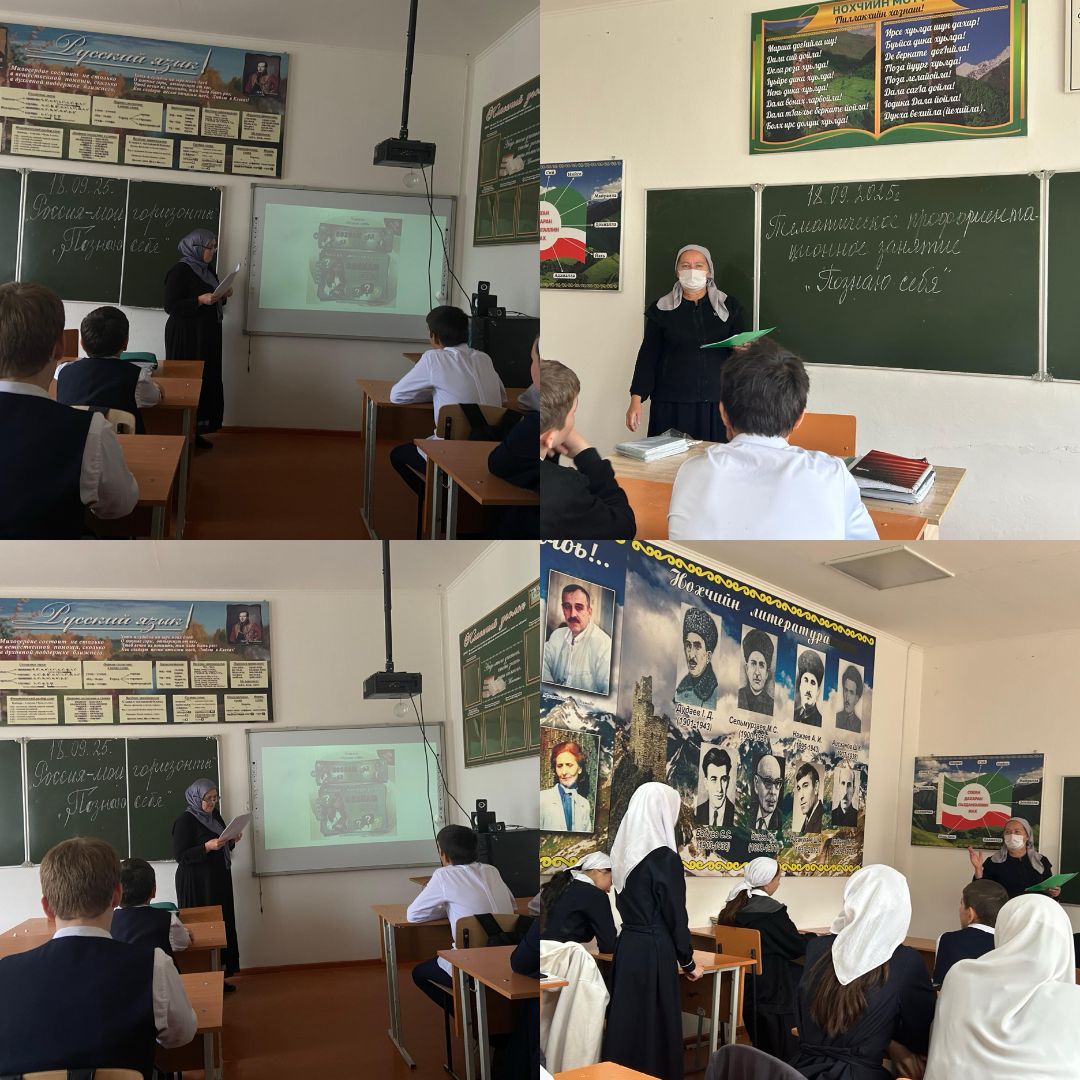 В МБОУ «СОШ №2 с.Самашки» прошло внеурочное занятие на тему " Познаю себя ", в рамках проекта «Россия - мои горизонты». Урок начался с беседы о важности самопознания для выбора профессии. Учитель предложил ученикам выполнить практические задания и тесты, направленные на выявление сильных и слабых сторон, интересов и предпочтений в профессиональной сфере. В ходе урока обсуждались разные типы профессиональной деятельности и соответствие их личным качествам. Учащиеся делились своими результатами и впечатлениями, что способствовало развитию умения анализировать себя и свои возможности.