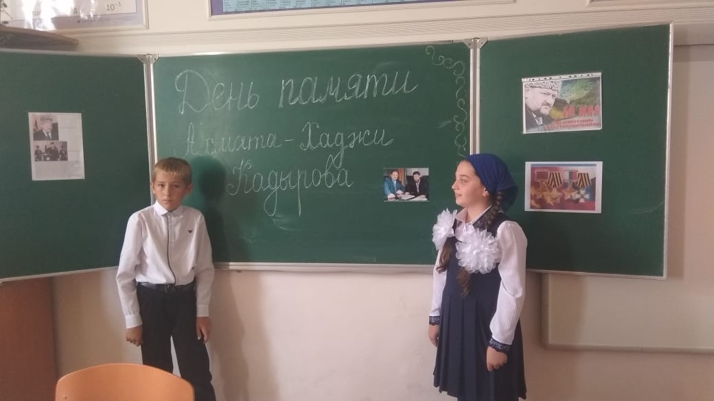 В школе состоялась книжная выставка, на которой были представлены документы, книги и газетно-журнальный материал жизни и деятельности А. А.Кадырова. На данном мероприятии свои творческие способности проявили не только учителя, но и учащиеся.